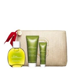 Ce coffret rĂ©unit l’Eau Extraordinaire, la toute dernière Eau de Soin Clarins, et deux soins corps au parfum revitalisant : une crème hydratante corps au beurre de karitĂ© bio et une crème douche enrichie en huile d’amande douce bio.