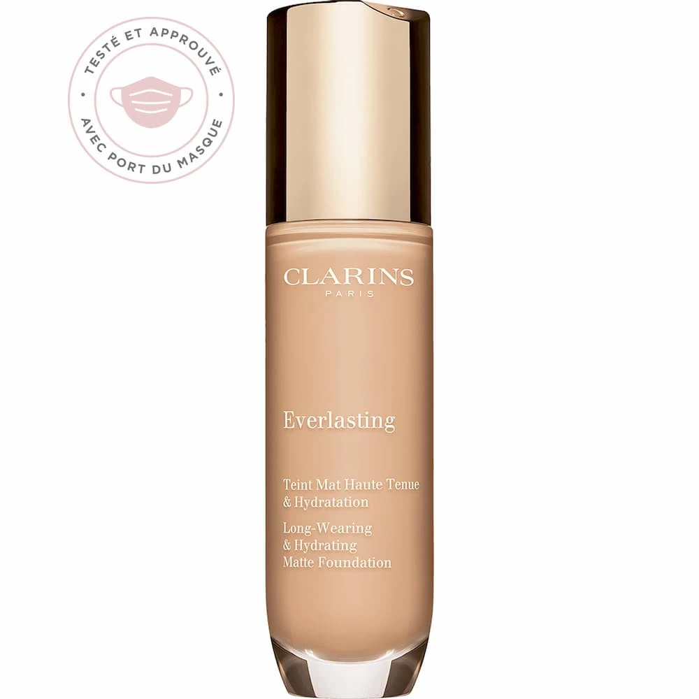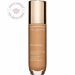 | BĂ©nĂ©fice produit | Dans le fond de teint Everlasting Fluid, tout le soin Clarins : **Tests consommateurs, 287 femmes, 14 jours RĂ©sultats : *Tenue 24h « Etude clinique – 20 femmes – 24 h » hydratation 24 h « test clinique/instrumental – 10 femmes -24h |