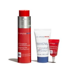 Le cadeau idéal à offrir ou à se faire offrir pour Noël. Le coffret parfait pour une peau hydratée et énergisée. Le Gel Energisant ClarinsMen hydrate et fortifie la peau des hommes en un seul geste. Le contour des yeux Gel Energisant Yeux défatigue visiblement le regard en un seul geste, atténue les cernes et les poches et hydrate. Découvrez également le Nettoyant Visage ClarinsMen pour nettoyer le visage et purifier la peau et la nouveauté Double Serum Light Texture, l’iconique Double Serum se décline en une texture légère aux résultats prouvés sur les signes de l’âge.
