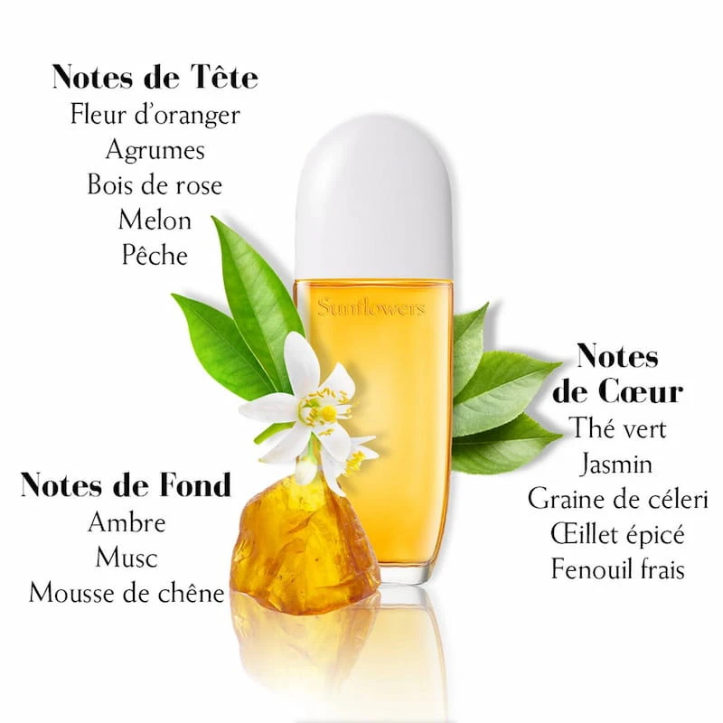 Cet esprit, la chaleur de ses fleurs et l’intensitĂ© de sa couleur sont rĂ©unis dans cette Eau de Toilette. Sunflowers Ă©voque une journĂ©e lumineuse. Tel les rayons de soleil qui nous rĂ©chauffent, Sunflowers Ă©voque le bonheur, la joie, l’effusion. Le verre transparent rĂ©vèle un parfum scintillant or.