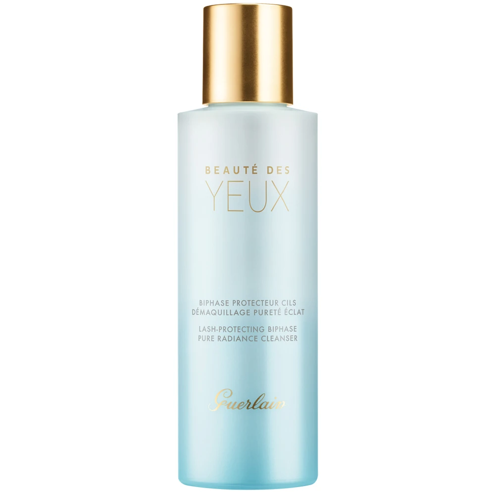 Cette huile bi-phasée démaquillante, Beauté des Yeux de Guerlain, à la fraîcheur extrême nettoie tout en respectant les yeux sensibilisés par les lentilles de contact