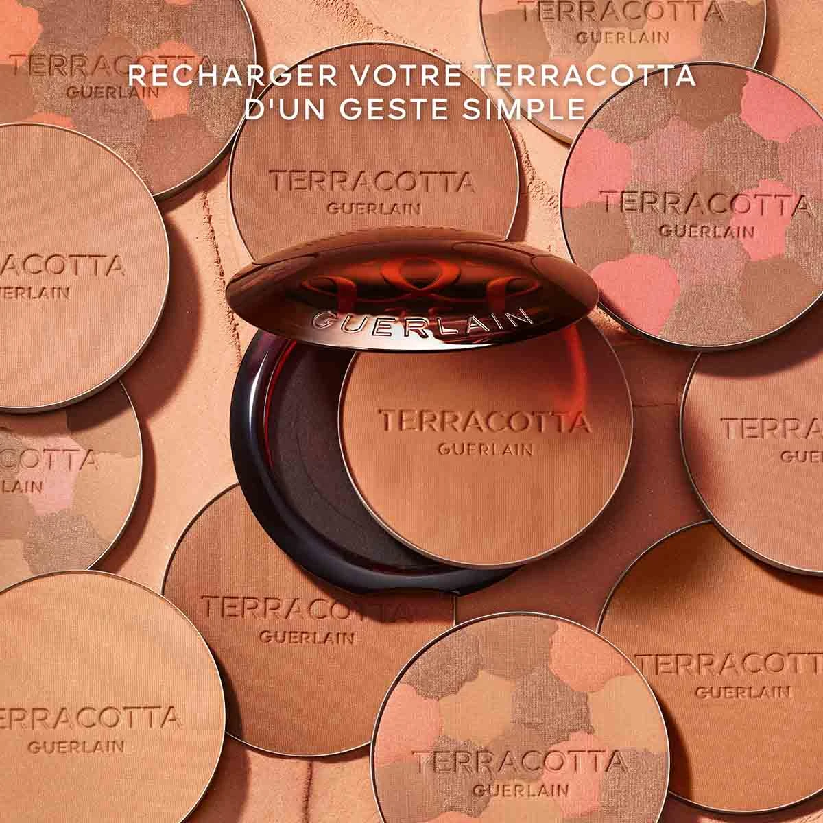 | Conseils d’utilisation | « Mon secret pour un effet sun-kissed irrĂ©sistible ? Appliquer la Terracotta sur les zones les plus bombĂ©es comme les pommettes, l’arĂŞte du nez et le haut du front pour apporter plus de structure au visage tout en rĂ©chauffant dĂ©licatement le teint. » Violette, Directrice de la CrĂ©ation du Maquillage Guerlain DĂ©ployer les cils avec le Mascara Noir G, Courbe et Volume Intense 24HÂą. ÂąTest instrumental sur 32 femmes. |