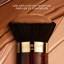 Aussi performant qu’éthique, le pinceau Kabuki est doté d’une base en bois satiné couleur acajou – porteur du label FSC WOOD –, sourcé de manière responsable. Avec sa virole dorée estampillée du logo Guerlain, il s’affirme comme un objet de beauté iconique.
