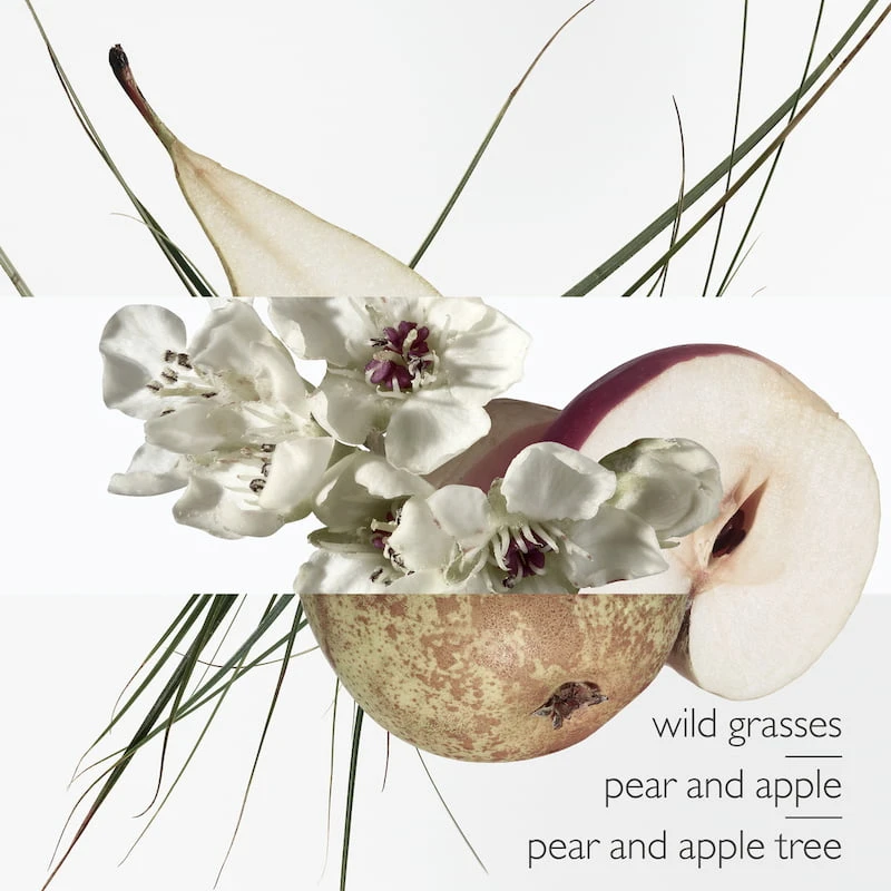 Un pommier, un poirier, un magnolia dans l’air de Paris, des herbes folles créent ce parfum de lumière et de plaisir, croquant et rieur.