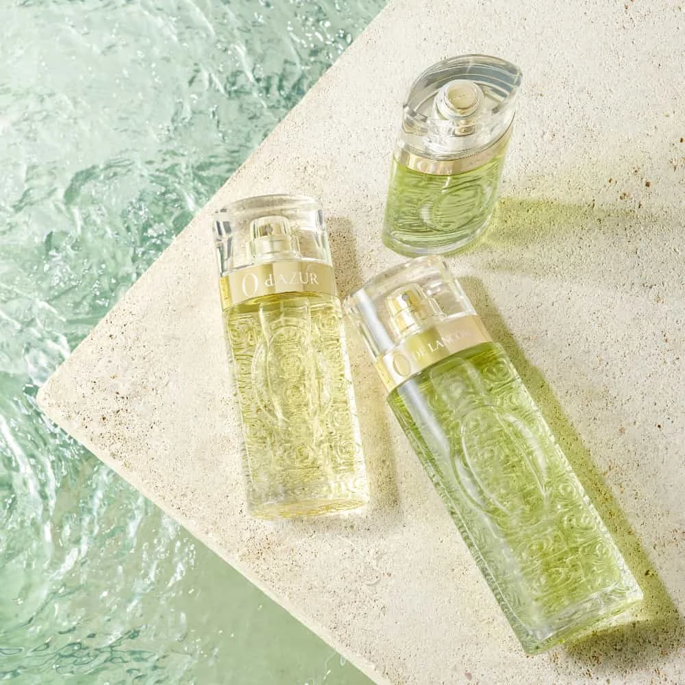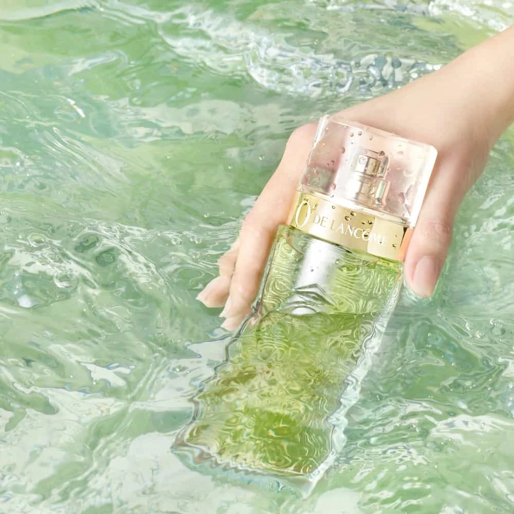 Facetté et miroitant, le flacon Ô de Lancôme laisse transparaitre un jus de couleur verte eau éclatante, aux reflets acidulés. Il incarne l’énergie de l’eau, avec en son cœur un « Ô » qui signe ce flacon totem.